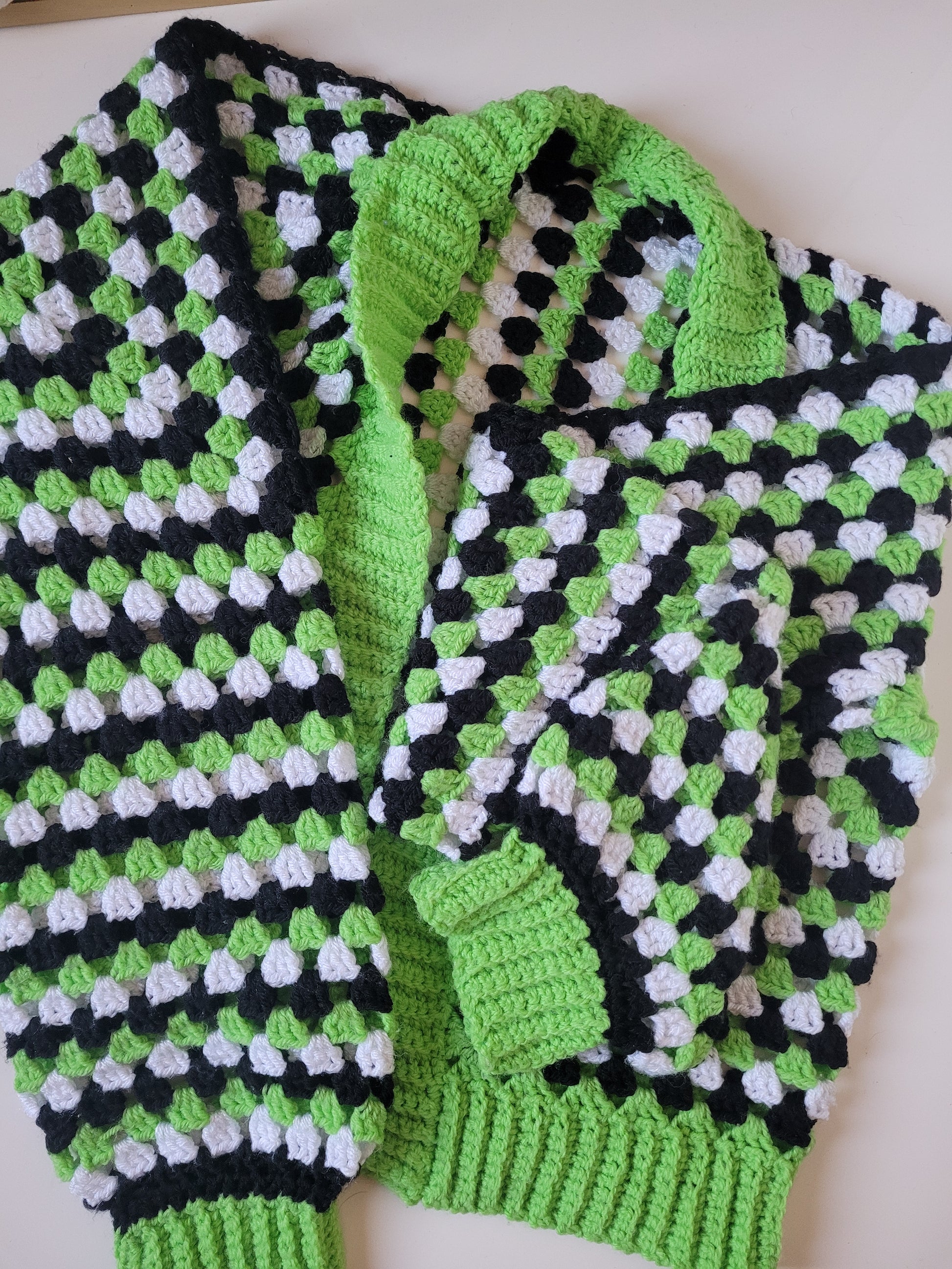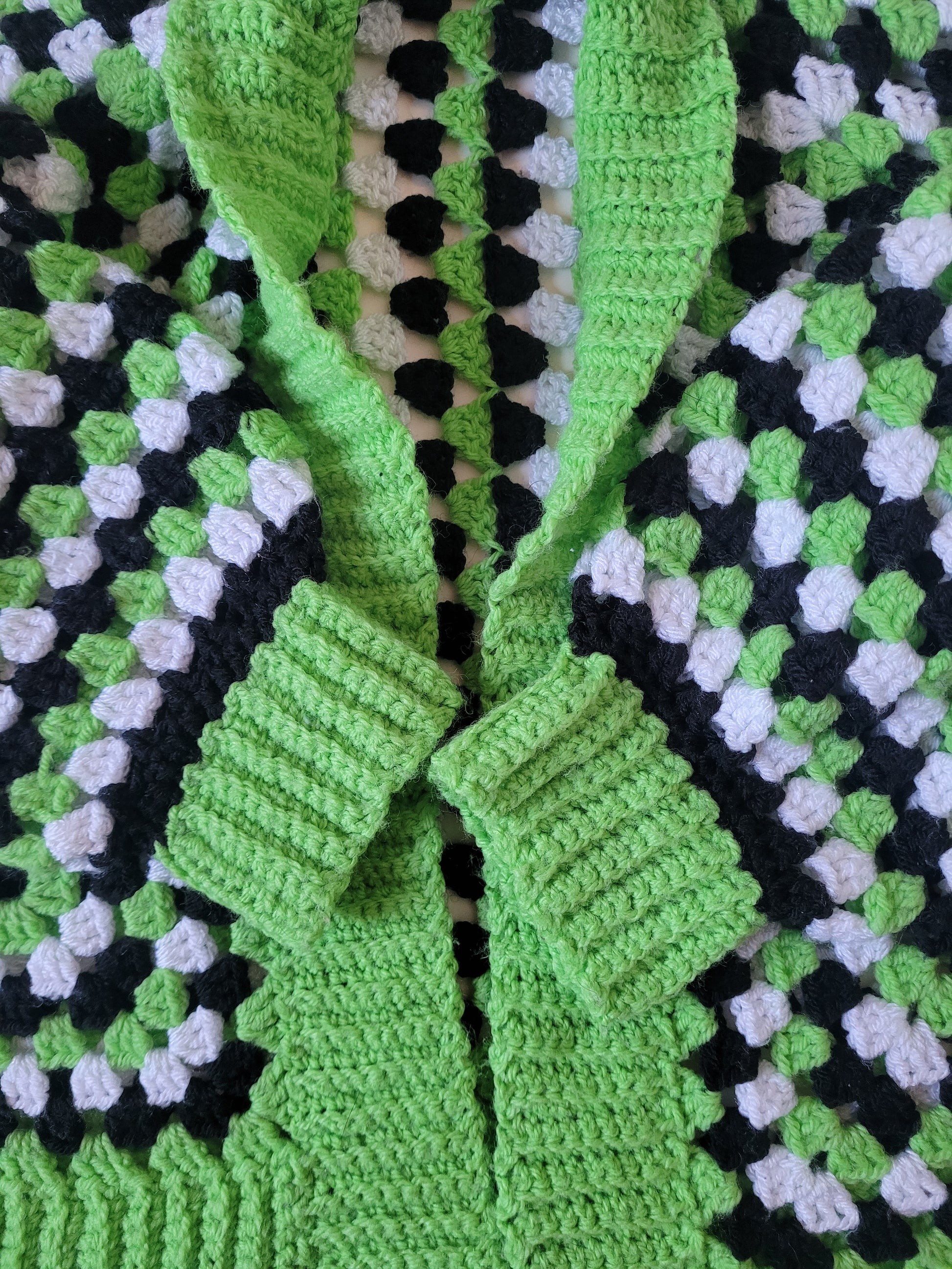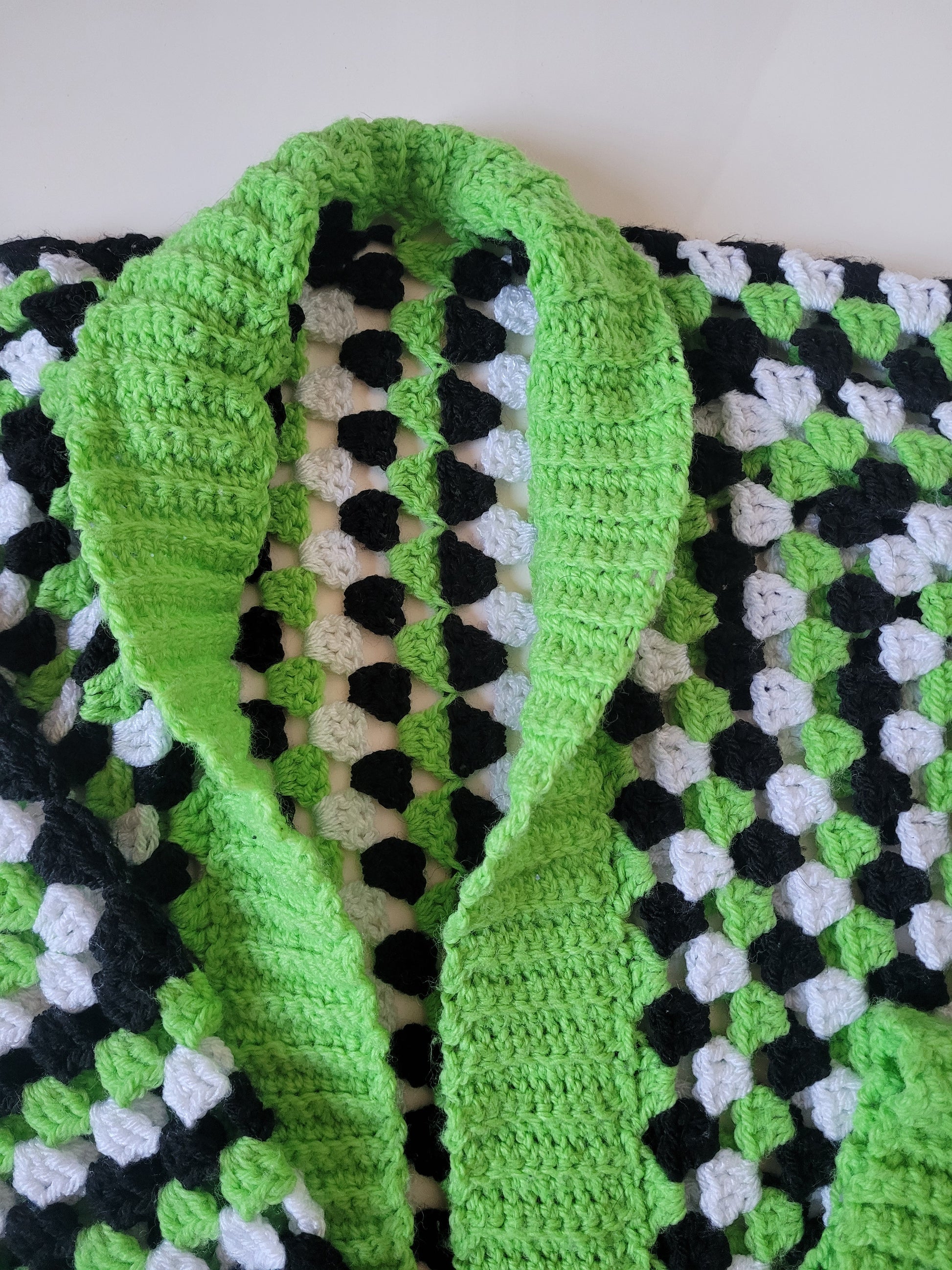 Green, black and white hexicardigan. Fits 14 to 16 adult female